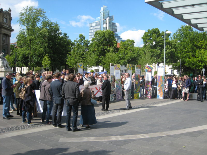 Protestaktion am 19.5.2015 vor der Staatskanzlei Übergabe der 15.000 Petitions-Unterschriften an Ministerpräsident Stefan Weil Photos: Gerhard Granzow |